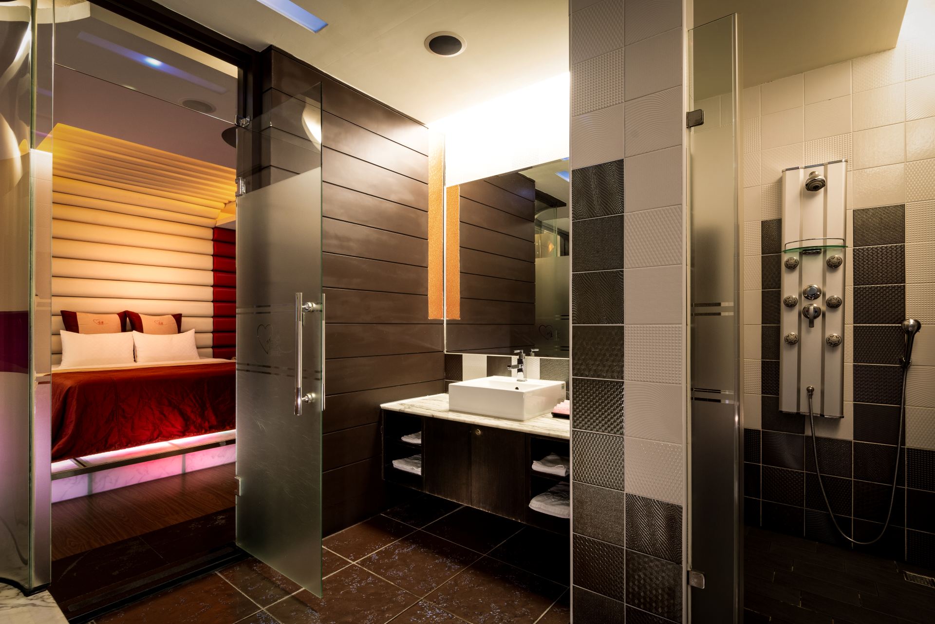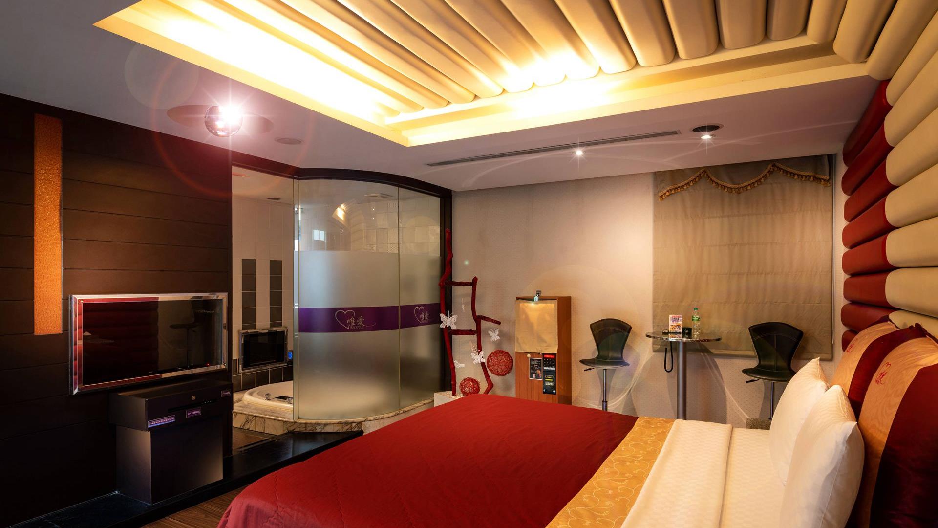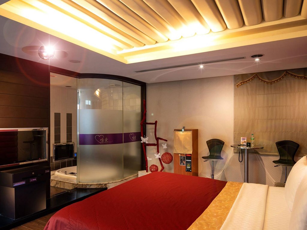 七彩按摩浴缸 / 客房、浴室雙電視 / 高速寬頻網路 / 專屬獨立車庫 / 情趣按摩椅 / VOD隨選視訊 / 乾溼分離多功能SPA淋浴 / 立體聲環繞音響 / LED情境燈光 / 旋轉霓虹燈 / 淋浴SPA噴柱