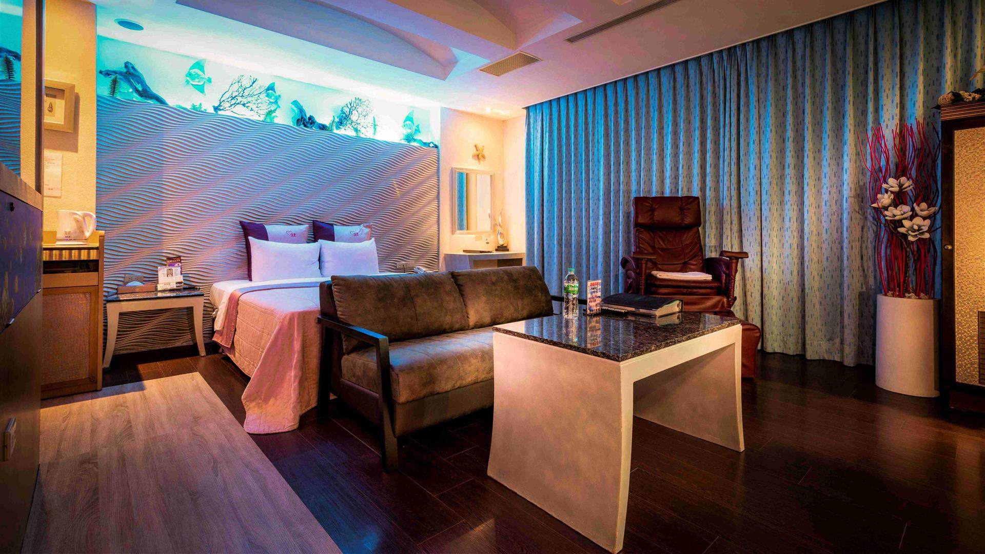 百萬KTV視聽設備 / 蒸氣室 /烤箱 /情趣按摩椅(R116) / 七彩按摩浴缸 / 客房、浴室雙電視/ 高速寬頻網路 / 專屬獨立車庫 / VOD隨選視訊 / 乾溼分離多功能SPA淋浴 / 立體聲環繞音響 / LED情境燈光